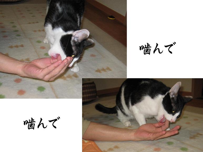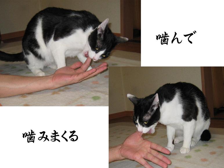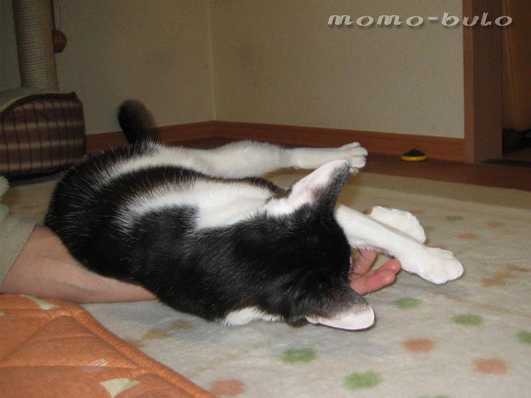 噛んでた手の上にでんぐり返しど~んと乗っかる
