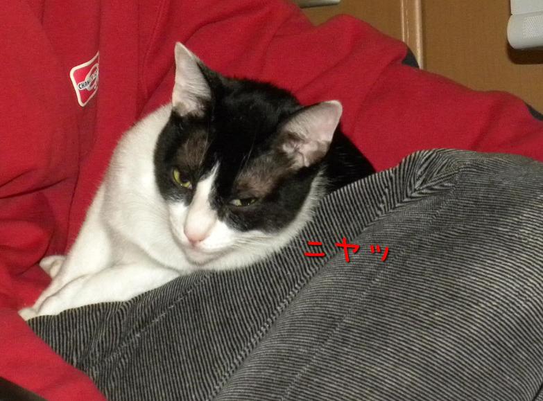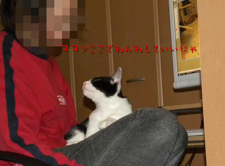 コタツから出てきてママの膝へ