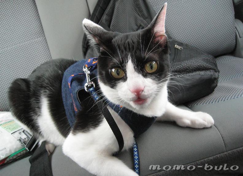 いつものように車が嫌いなモモは緊張です