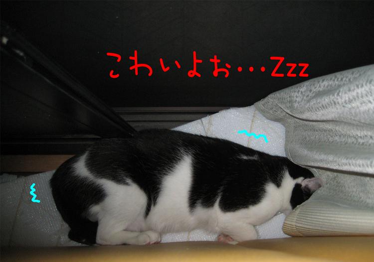 ソファの裏で隠れてたら眠くなっちゃったみたい